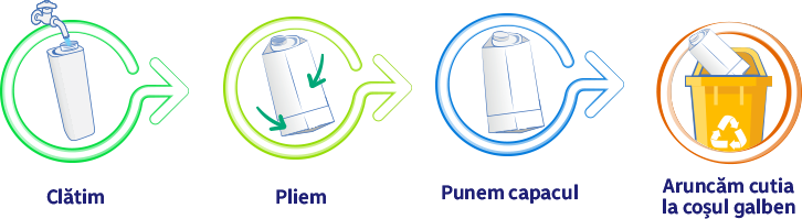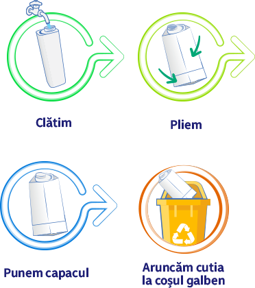 În România, ambalajele de carton Tetra Pak trebuie aruncate în containerul galben destinat plasticului,